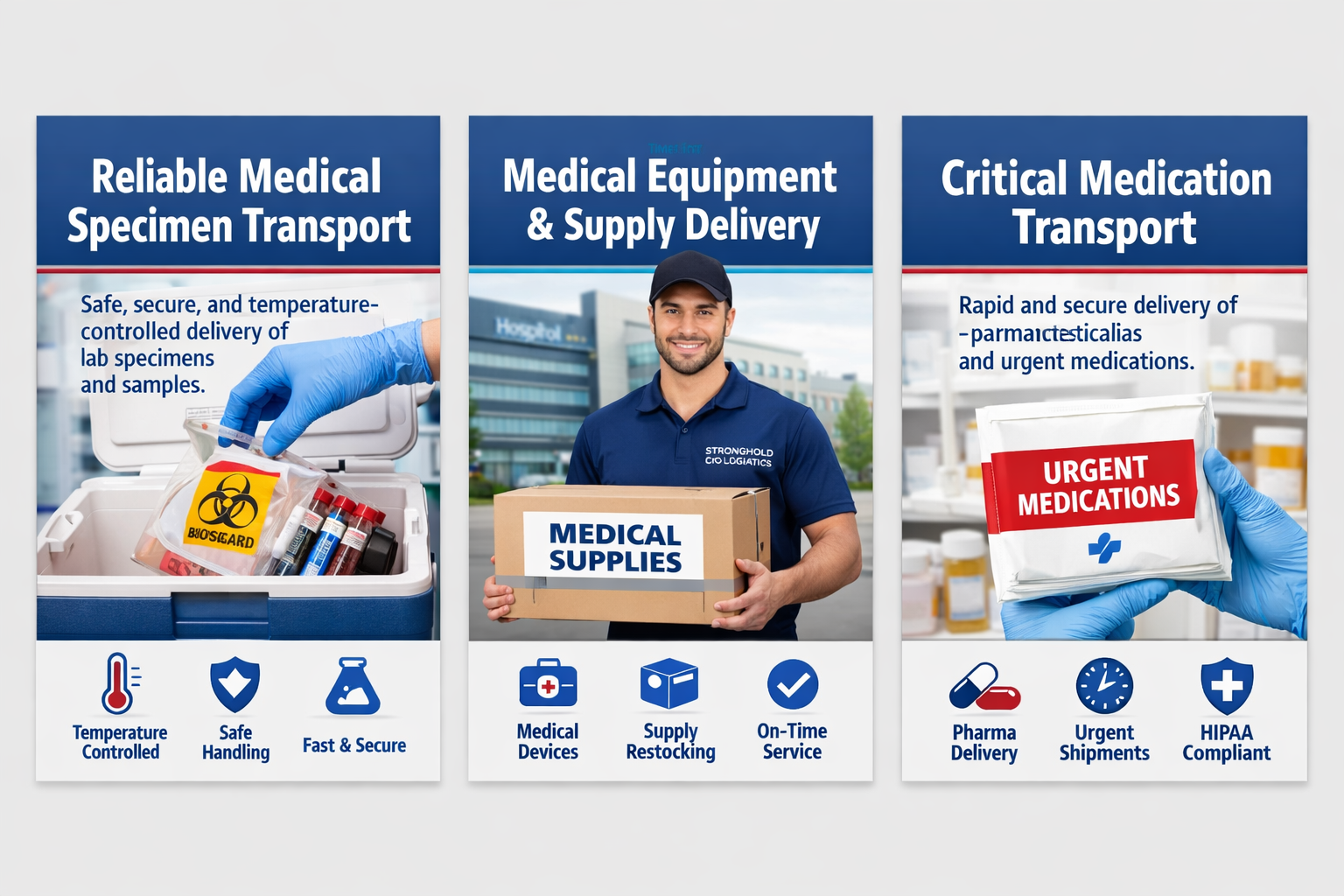 At Stronghold Courier & Logistics, we understand that medical deliveries require speed, professionalism, and attention to detail. Our medical courier division specializes in the safe and timely transport of medical equipment, dental cases, lab materials, supplies, records, and other time-sensitive healthcare items throughout Metro Atlanta, surrounding areas and nationwide.